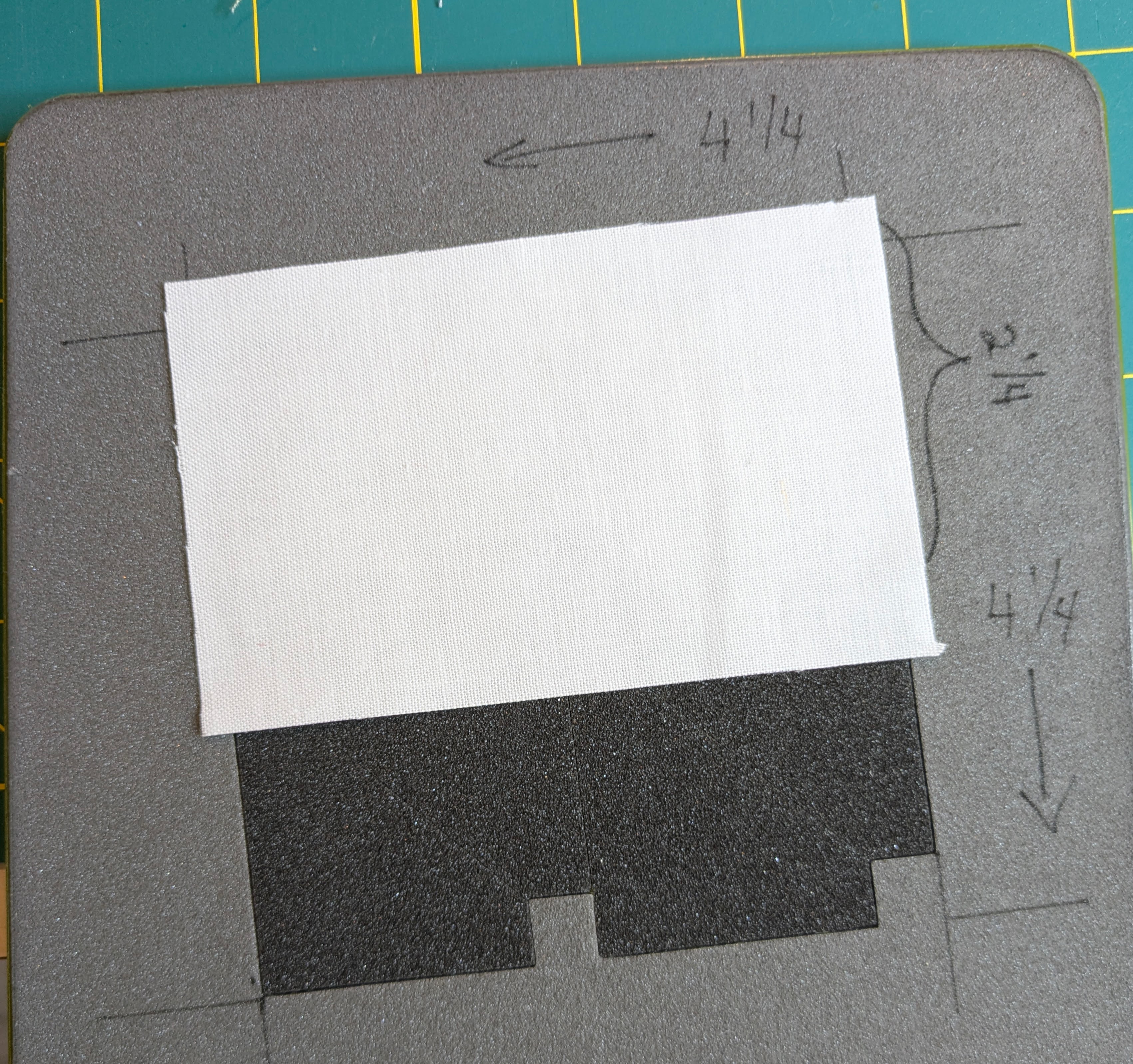 You might wonder about the measurements written on my dies. They show me at a glance what size I need to rough cut my fabric. Your measurements will probably be different, depending on what size Qube you are using.